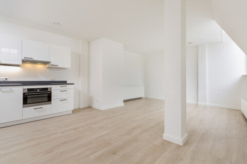 Dit prachtige appartement is gelegen op de 4e verdieping van het pand. Het heeft een royale woonkamer met open keuken die is v.v. diverse inbouwapparatuur zoals een koelkast, vaatwasser, combi-oven, inductiekookplaat en afzuigkap en een zwart kunststof werkblad. Het appartement heeft 2 ruime slaapkamers. De badkamer is v.v. een douche, ligbad, toilet en wastafelmeubel.