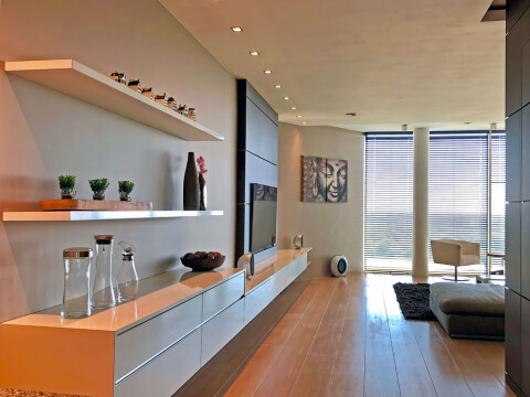 The apartments in Apollo Residence stand out because of the good use of space, sophisticated application of light and high quality material and the way the landscape of the housing is allowed. Each apartment has two spacious bedrooms equipped with bathroom with bath and toilet in each one, a spacious living room with an open kitchen with all equipment. From the living room you have access to a balcony with a beautiful view.