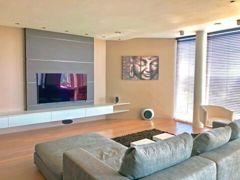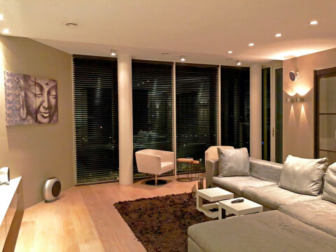 € 3.500,- inclusive city heating, water, electricity, internet, TV, kitchen equipment, furniture, upholstery and service costs, parking place, 24/7 sauna and gym.