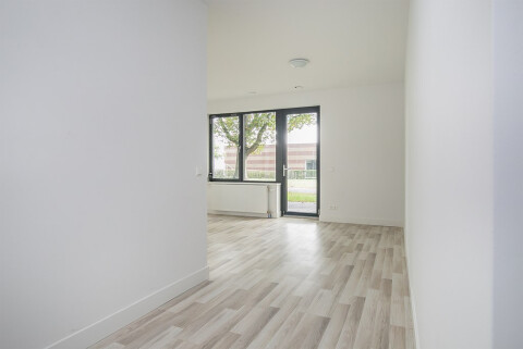 Dit prachtige hoek appartement is gelegen in een appartementencomplex bestaande uit 12 appartementen verdeeld over 3 lagen. Dit appartement is gelegen op de begane grond en heeft bij binnenkomst een ruime woonkamer met open keuken die is voorzien van een koelkast met vriesvak, vaatwasser, combi oven, kookplaat en afzuigkap. De woonkamer biedt tevens toegang tot een ruimte tuin waar u in de zomer heerlijk kunt genieten van de zon. Het appartement heeft een ruime slaapkamer. Vanuit de slaapkamer heeft u toegang tot de badkamer met douche, wastafel en wasmachineaansluiting. Er is een apart toilet. Op de begane grond van het complex is er een mogelijkheid tot het huren van afgesloten parkeerplek. Tevens wordt hier een ruimte ingericht voor het stallen van je fiets. Kortom een unieke kans op een prachtig en rustig gelegen locatie.
