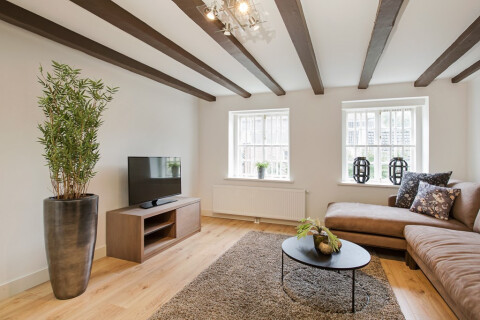 This aparment is inside this lovely building have recently been completely renovated and offer a modern interior that includes a dining area, comfy sofa, a brand new fully equipped kitchen, a bathroom, a separate toilet, two bedrooms with a double bed, a nice view from the apartment at the front side of the building, and a communal garden has been added to the apartment on the rearside of the building. Combine the cozy interior with the location in a quiet former monastery garden.