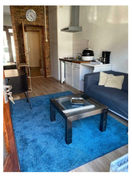 Het appartement bestaat uit een eigen ingang, bij binnenkomst bevind zich een woon/eetgedeelte met keukenblok en toebehoren. (Apart toilet) Achterin bevind zich een slaapkamer met een douchecabine en wastafel.
